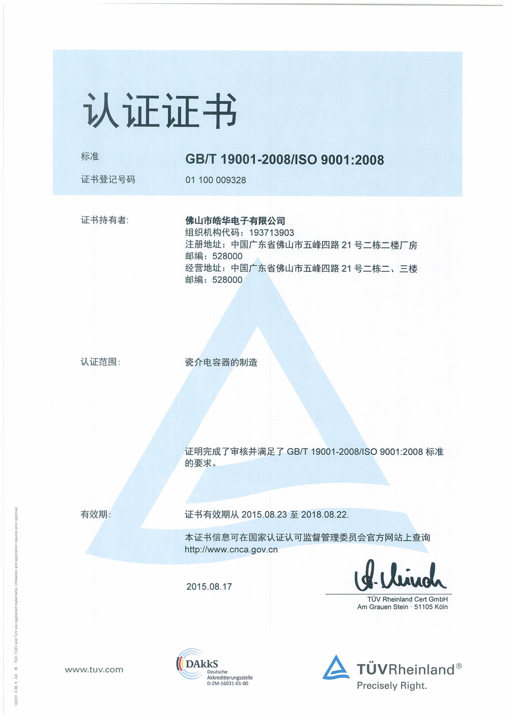 ISO9001證書
