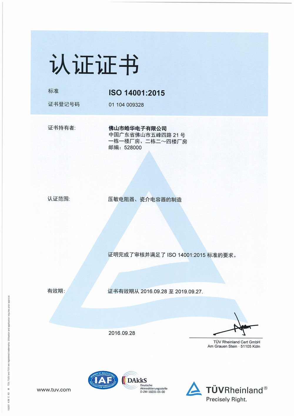 ISO14001證書
