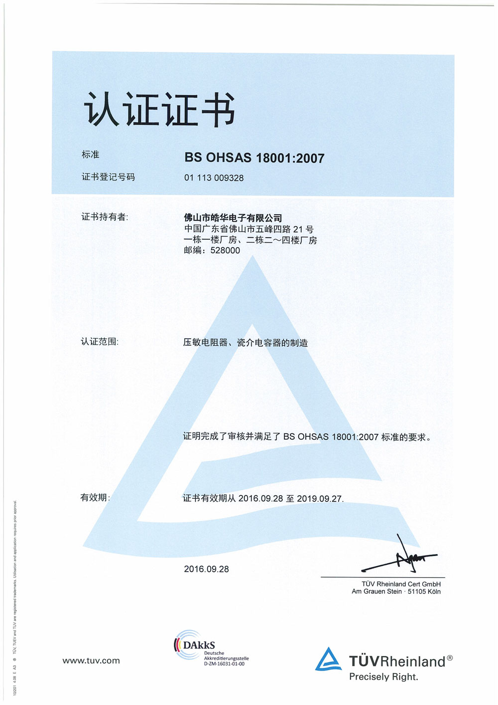 OHSAS18001證書