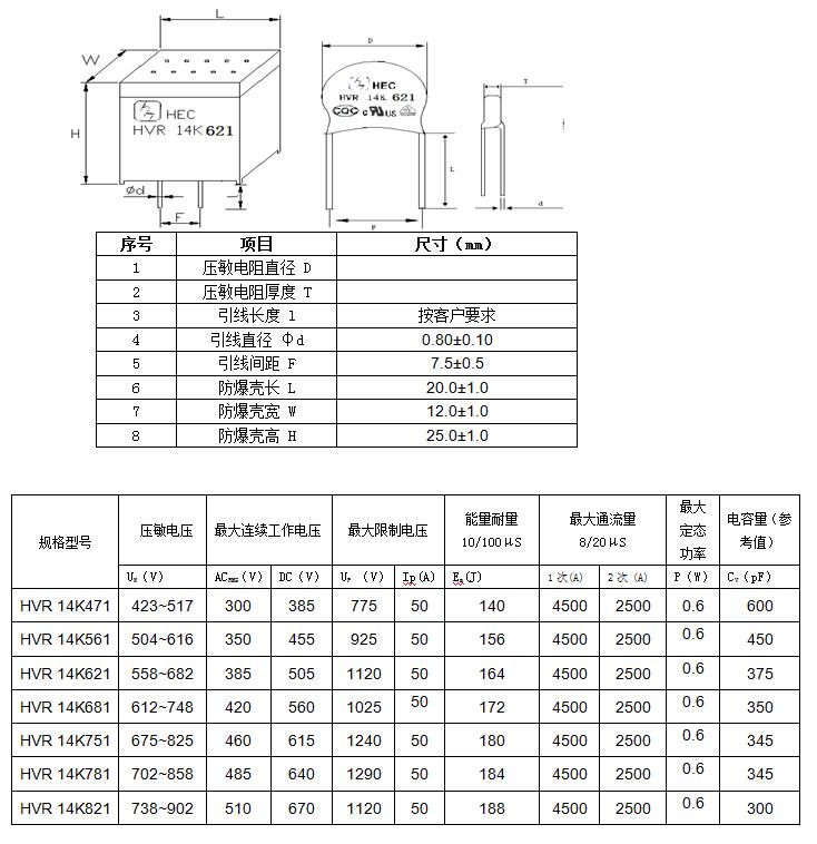 HVR防燃防爆爆型壓敏電阻器